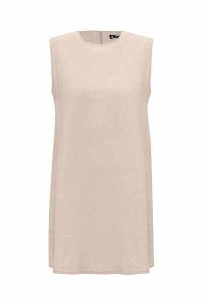 T25Y-6035 Düz Renk Kolsuz Keten Tunik STONE