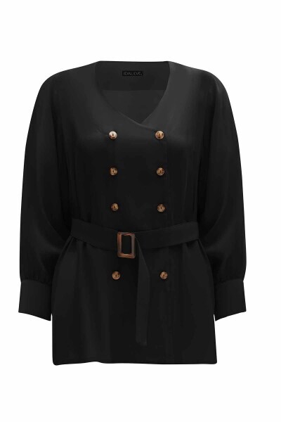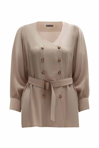 Kruvaze Kesim Beli Kuşaklı 1237-MİNK Tunik