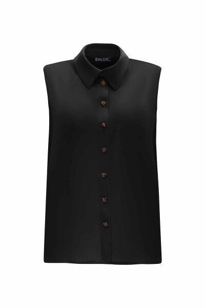 Düz Renk Cupro Kolsuz Siyah Tunik