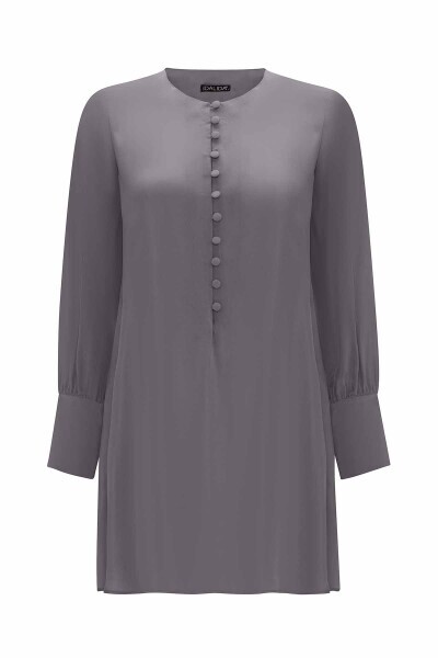 Yuvarlak Yaka Brit Detaylı Antrasit Tunik