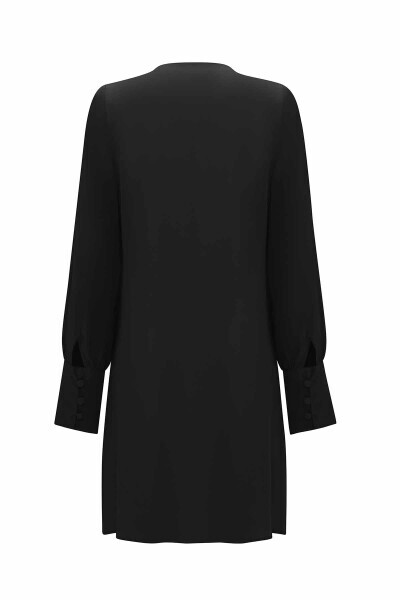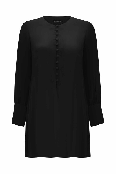 Yuvarlak Yaka Brit Detaylı Siyah Tunik