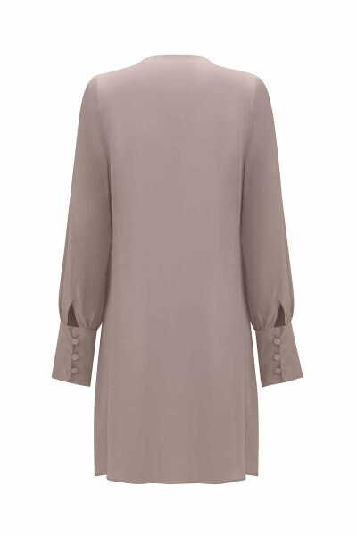 Yuvarlak Yaka Brit Detaylı Vizon Tunik