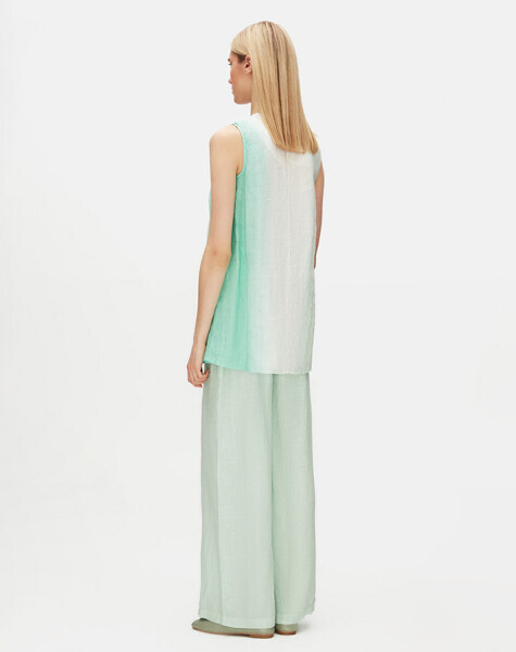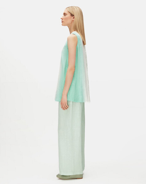 Degradeli Keten Kolsuz Yeşil Tunik