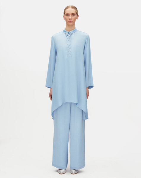 Renkli Taşlı Evaze Kesim Şık Mavi Tunik