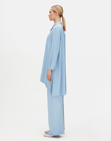 Uzun Kollu Basic Triko Açık Mavi Tunik