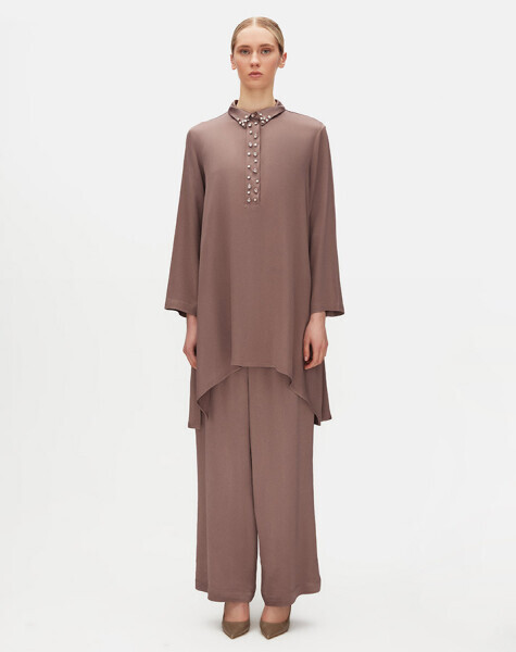 T25Y-6057 Renkli Taşlı Evaze Kesim Şık Tunik MİNK
