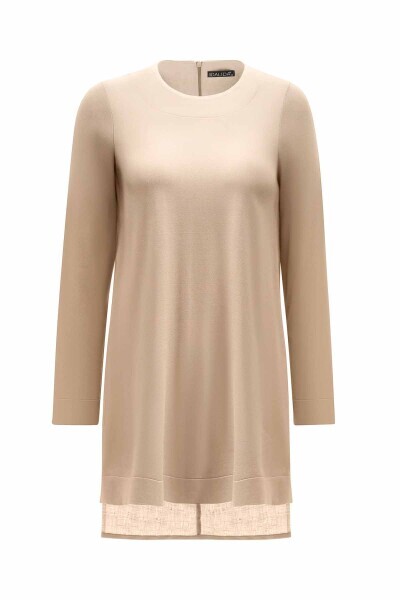 Uzun Kollu Bisiklet Yaka Keten Taş Renk Tunik
