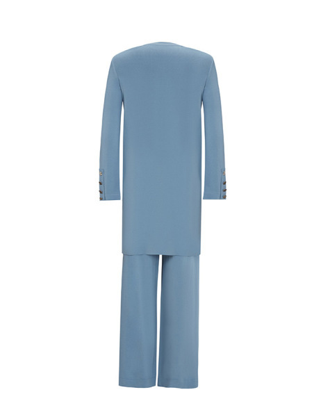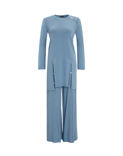 T25Y-7004 Düğme Aksesuarlı Bol Paça Triko Pantolon BLACK