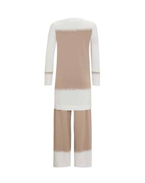 T25Y-7013 Paçası Renk Detaylı Triko Pantolon 1012-ECRU