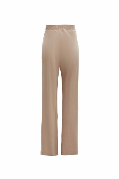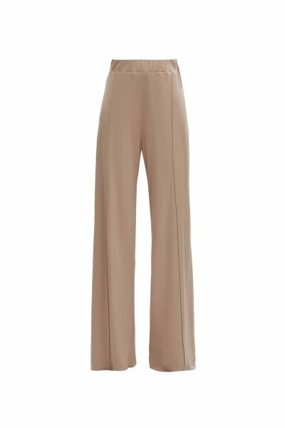 Önü Dikiş Detaylı Bol Paça Kumaş Taş Rengi Pantolon