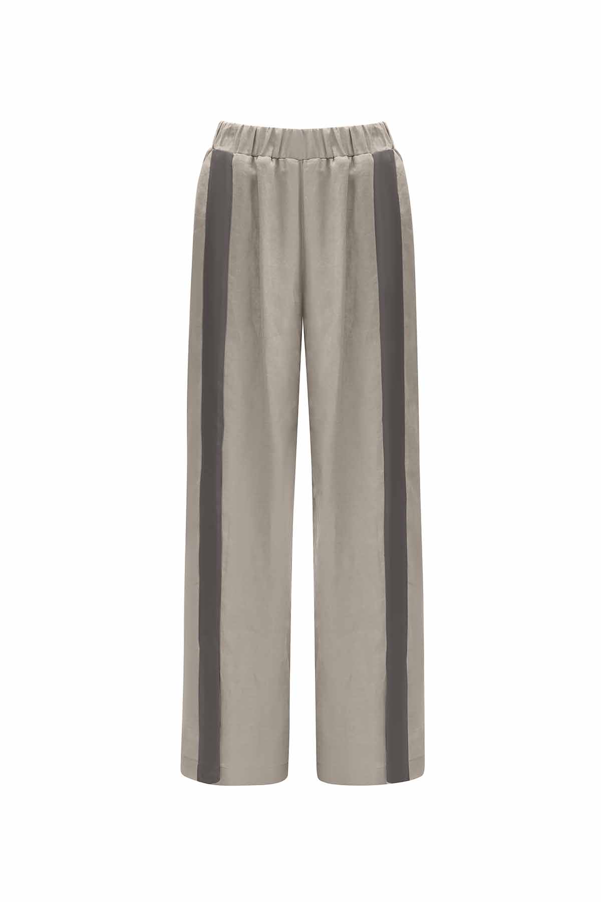 Şerit Detaylı Keten Bol Paça Antrasit Pantolon