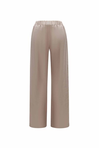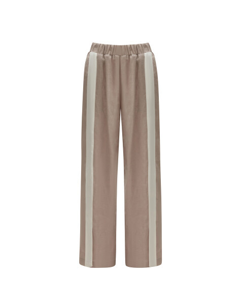 Şerit Detaylı Keten Bol Paça Vizon Pantolon