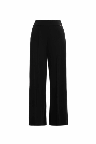 Önü Dikiş Detaylı Bol Paça Siyah Pantolon