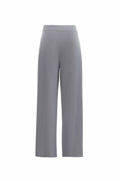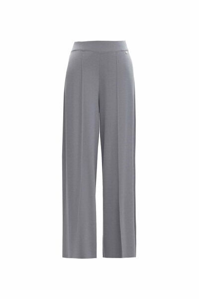 Önü Dikiş Detaylı Bol Paça Gri Pantolon