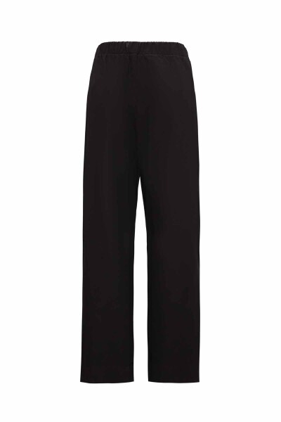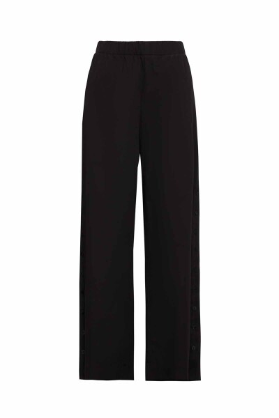 Yanları Düğmeli Pamuklu Bol Paça Siyah Pantolon