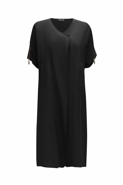 Yanı Yırtmaçlı Kruvaze Kesim Keten Siyah Ceket