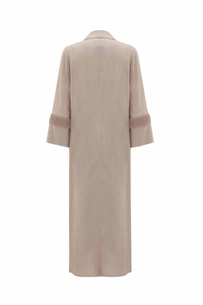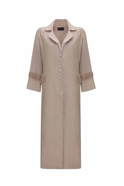 Püskül Detaylı Uzun Keten Vizon Ceket