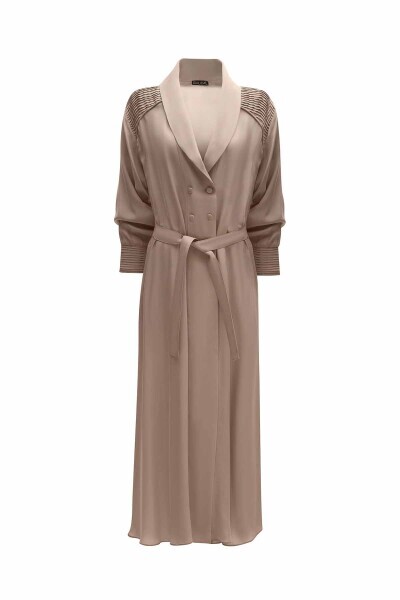 Nervür Detaylı Şal Yaka Vizon Kap