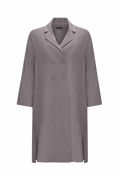 Yanı Yırtmaçlı Kruvaze Kesim Keten Gri Ceket