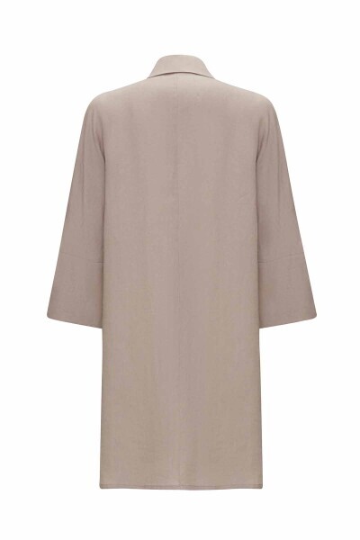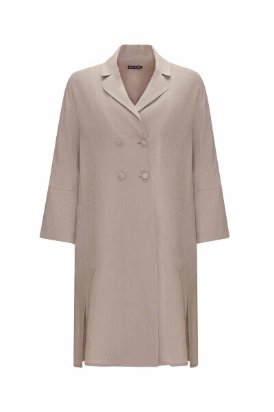 Yanı Yırtmaçlı Kruvaze Kesim Keten Vizon Ceket