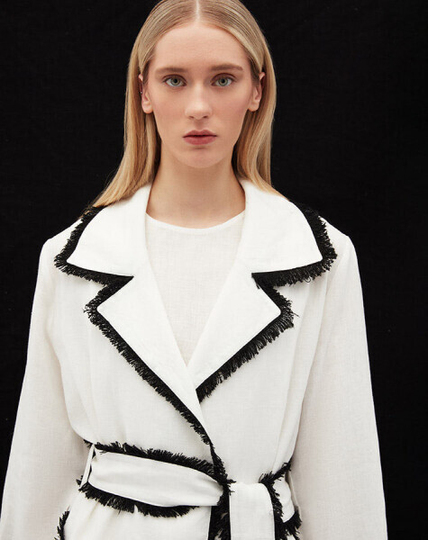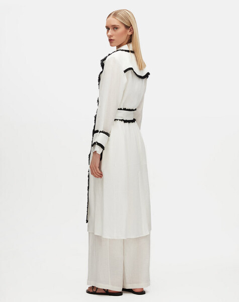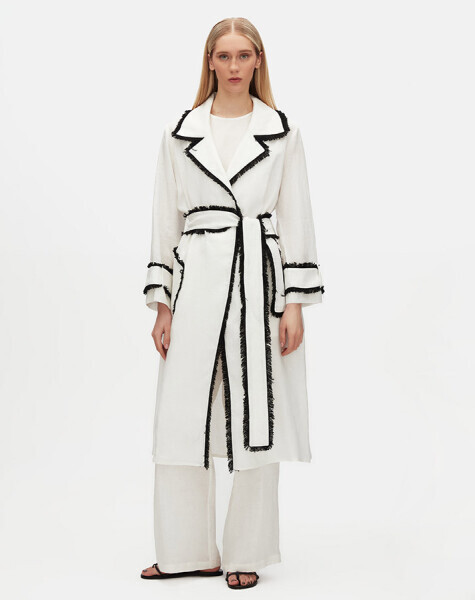 Detaylı Keten Ekru Trençkot