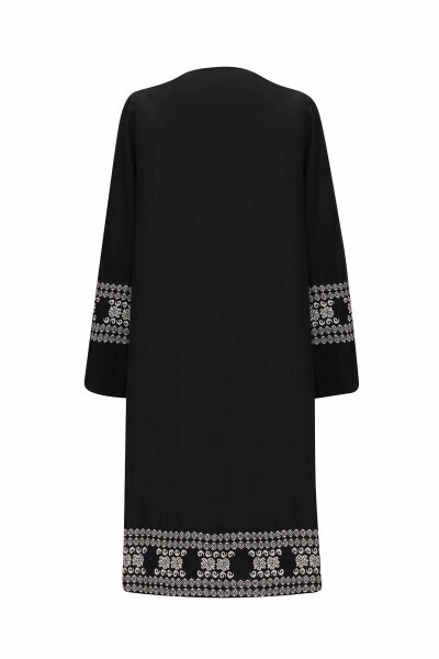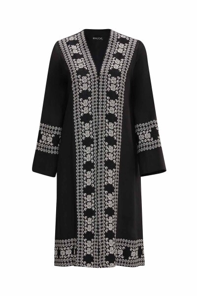 Manşetleri Triko Detaylı Keten Siyah Ceket
