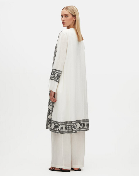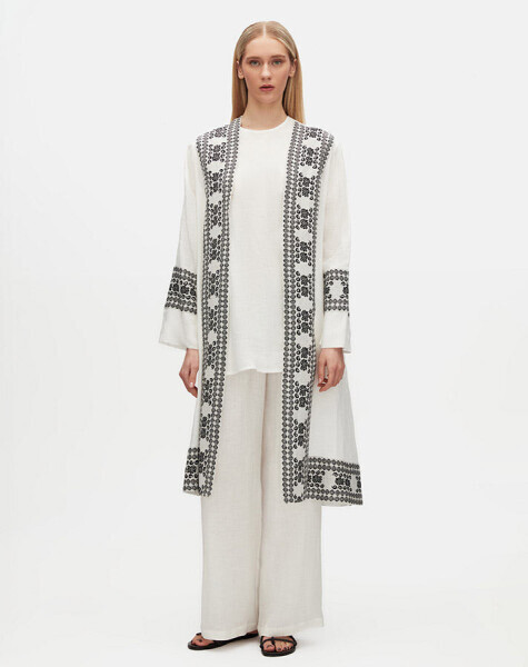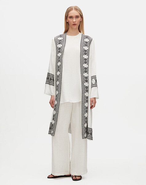 Manşetleri Triko Detaylı Keten Ekru Ceket