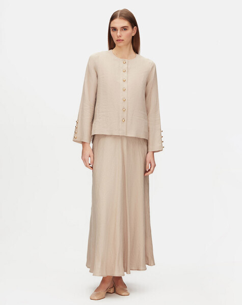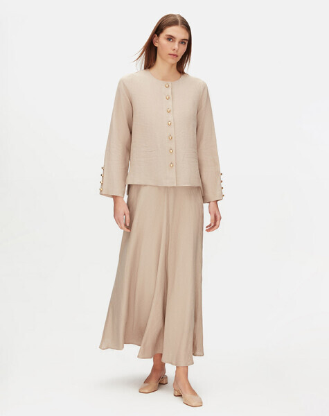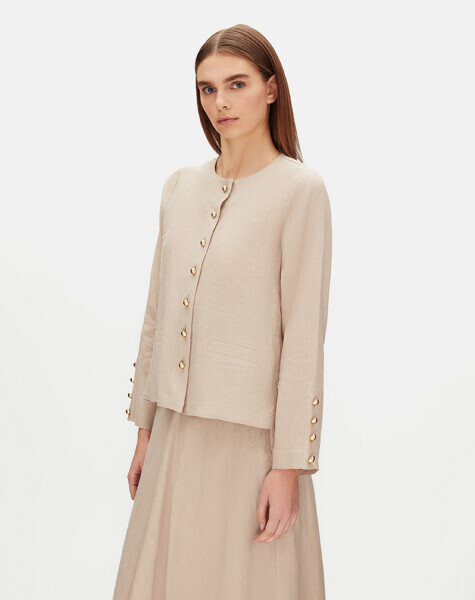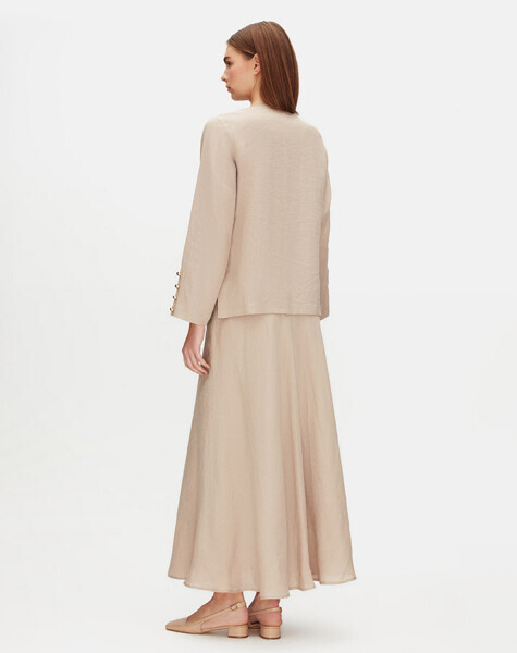 Yanı Yırtmaçlı Kruvaze Kesim Keten Siyah Ceket
