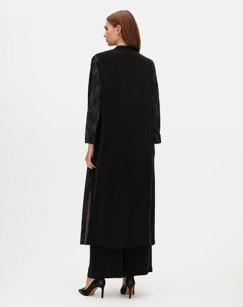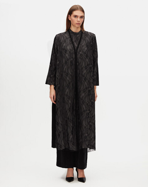 Zarif dantel detayları ve iç astarıyla konforu bir arada sunan bu ceket, sofistike bir şıklık yaratır. Dantel dokusu, cekete feminen bir hava katarken, iç astar sayesinde rahat bir kullanım sağlar. Hem özel günlerde hem de şık günlük kombinlerde tercih edilebilecek bu ceket, zarif ve modern bir duruş sergiler.