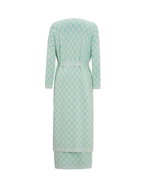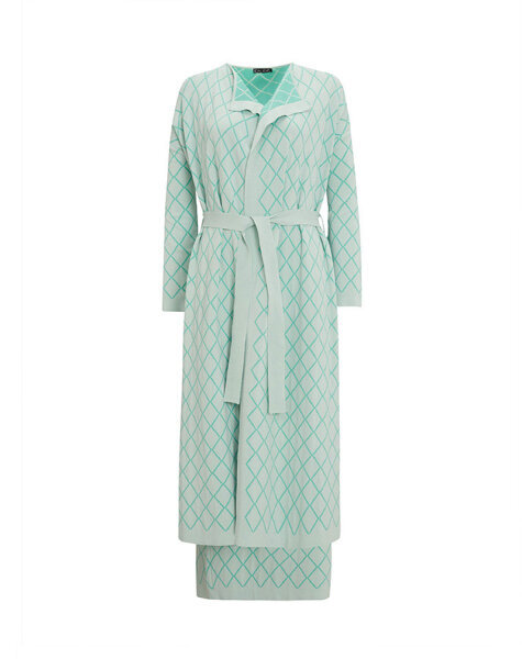 Baklava Desenli Uzun Triko Yeşil Hırka