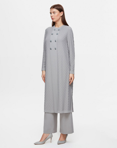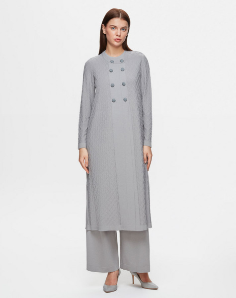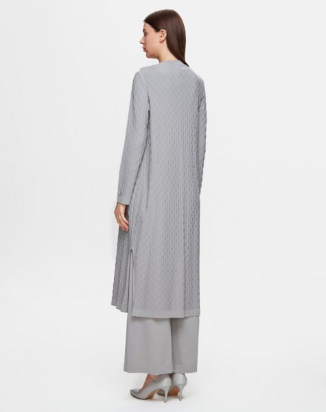Kendinden Baklava Dokulu Triko Gri Hırka