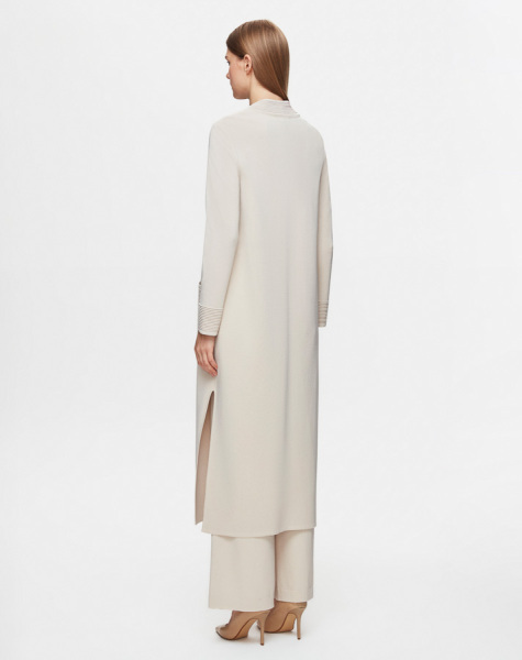 Bekletme Detaylı V Yakalı Uzun Kum Rengi Hırka