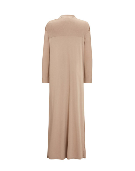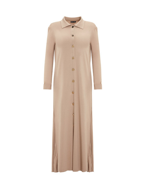 Gömlek Yaka Uzun Triko Taş Rengi Hırka