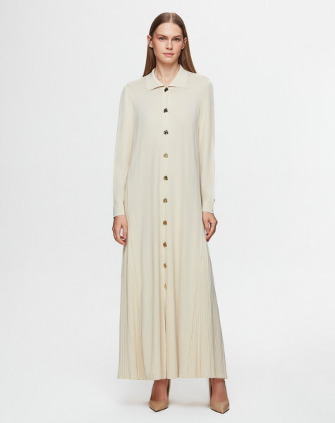 Gömlek Yaka Uzun Triko Sarı Hırka