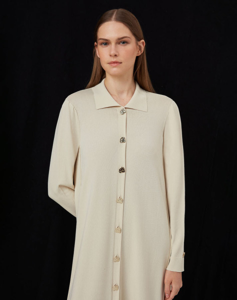 Yuvarlak Yaka Düğmeli Uzun Vizon Hırka
