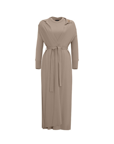 T26K-4016 Rahat Kesim Yuvarlak Yaka Elbise DARK GREY