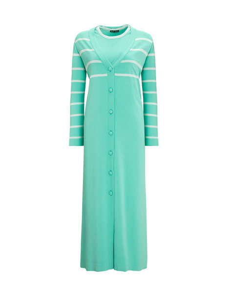 T25Y-9011 Çizgi Detaylı Düğmeli Uzun Hırka 1150-MİNT