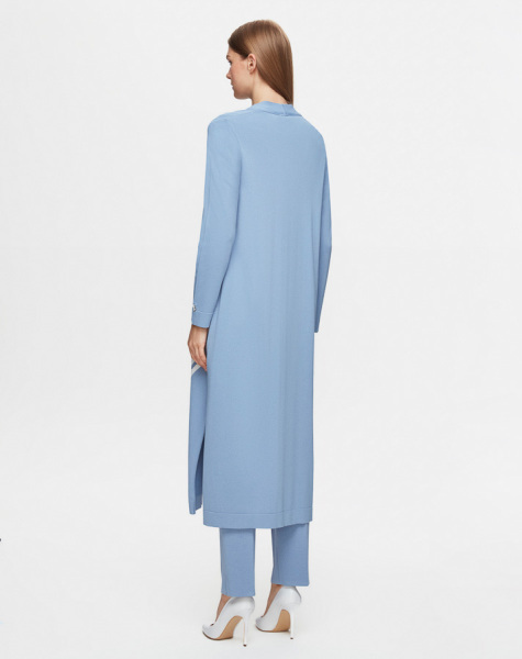 Yuvarlak Yaka Düğmeli Uzun Vizon Hırka