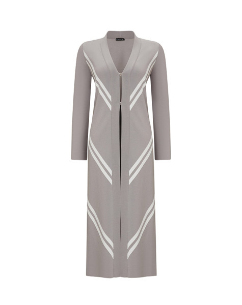 Verev Çizgili Uzun Gri Hırka