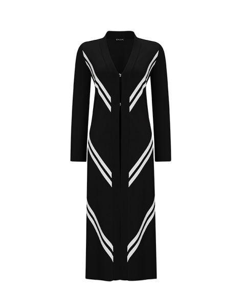 Yuvarlak Yaka Düğmeli Uzun Vizon Hırka