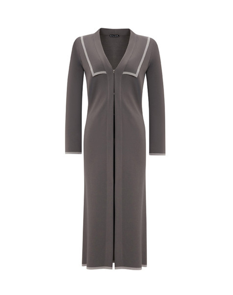 Yaka Detaylı Agraflı Antrasit Uzun Hırka