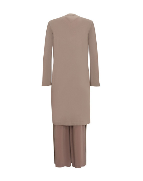 Cupro Detaylı Top Düğmeli Triko Vizon Hırka