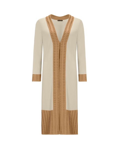 Yuvarlak Yaka Düğmeli Uzun Vizon Hırka