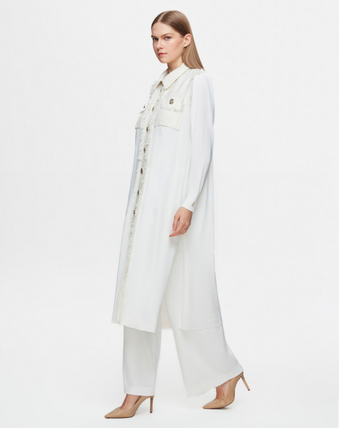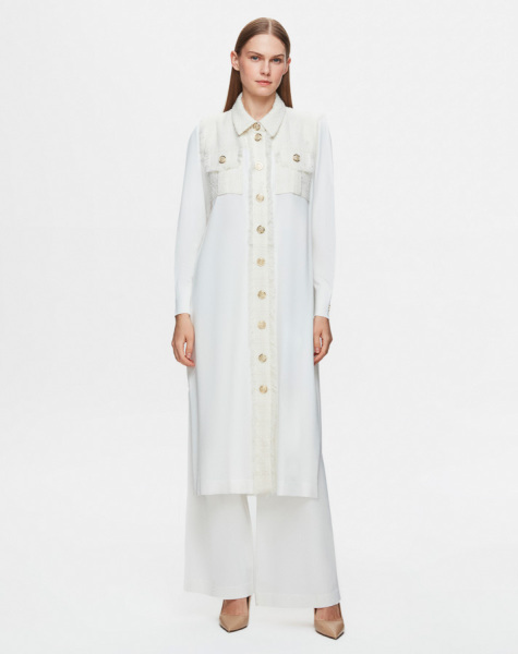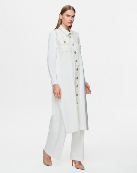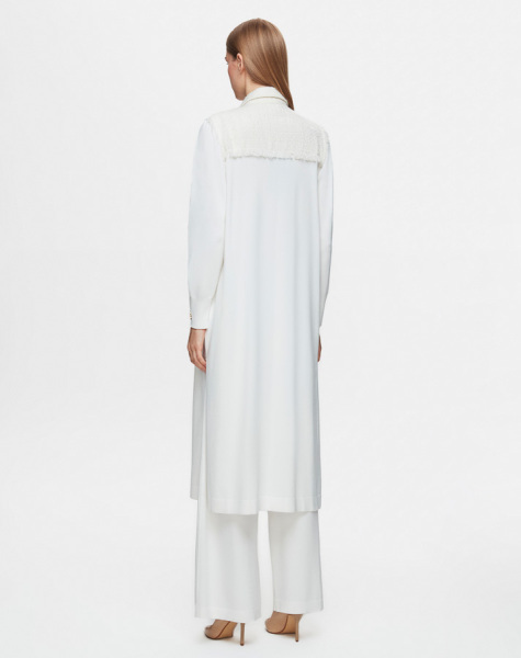 Yuvarlak Yaka Düğmeli Uzun Vizon Hırka