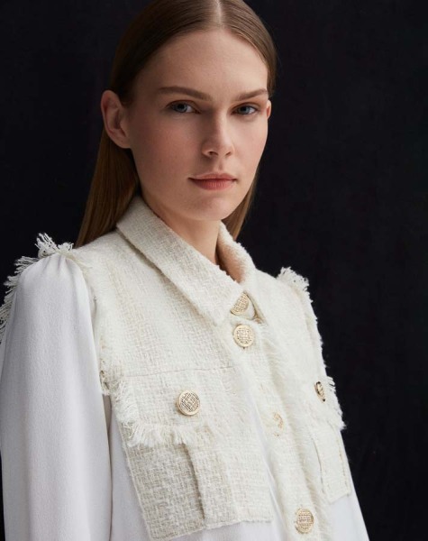 Püskül Ve Düğme Detaylı Klasik Ekru Hırka