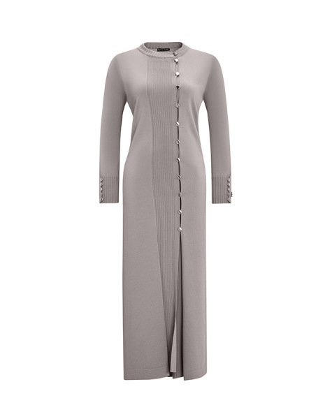 Yuvarlak Yaka Düğmeli Uzun Gri Hırka