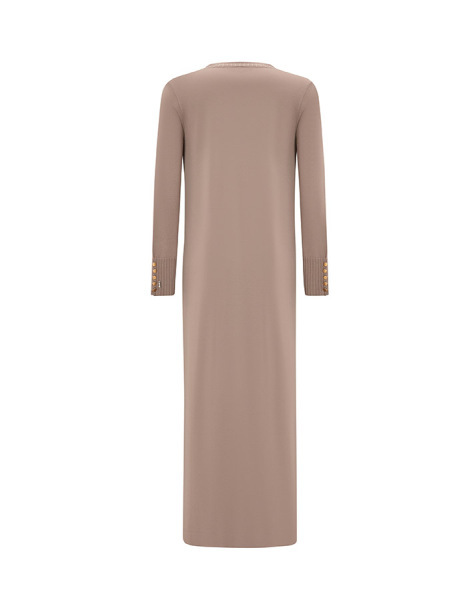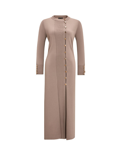 Yuvarlak Yaka Düğmeli Uzun Vizon Hırka