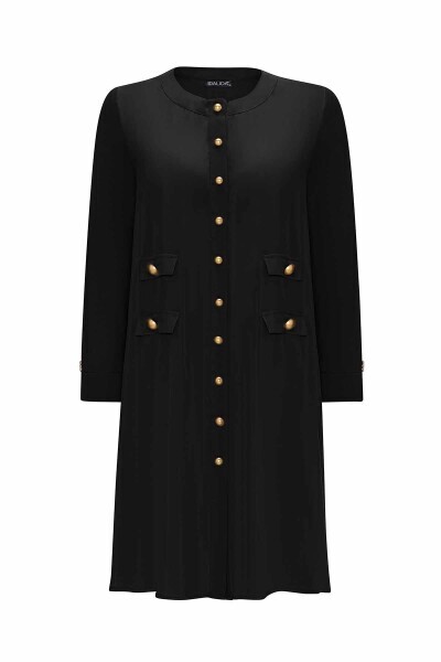 Çift Cep Kapaklı Triko Cupro Siyah Hırka