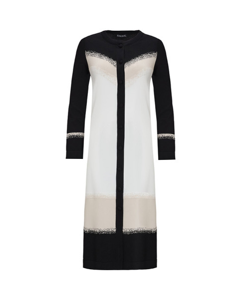 Üç Renkli Örgü Teknikli Uzun Siyah Hırka