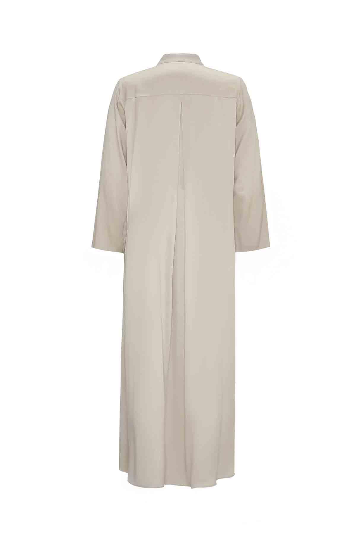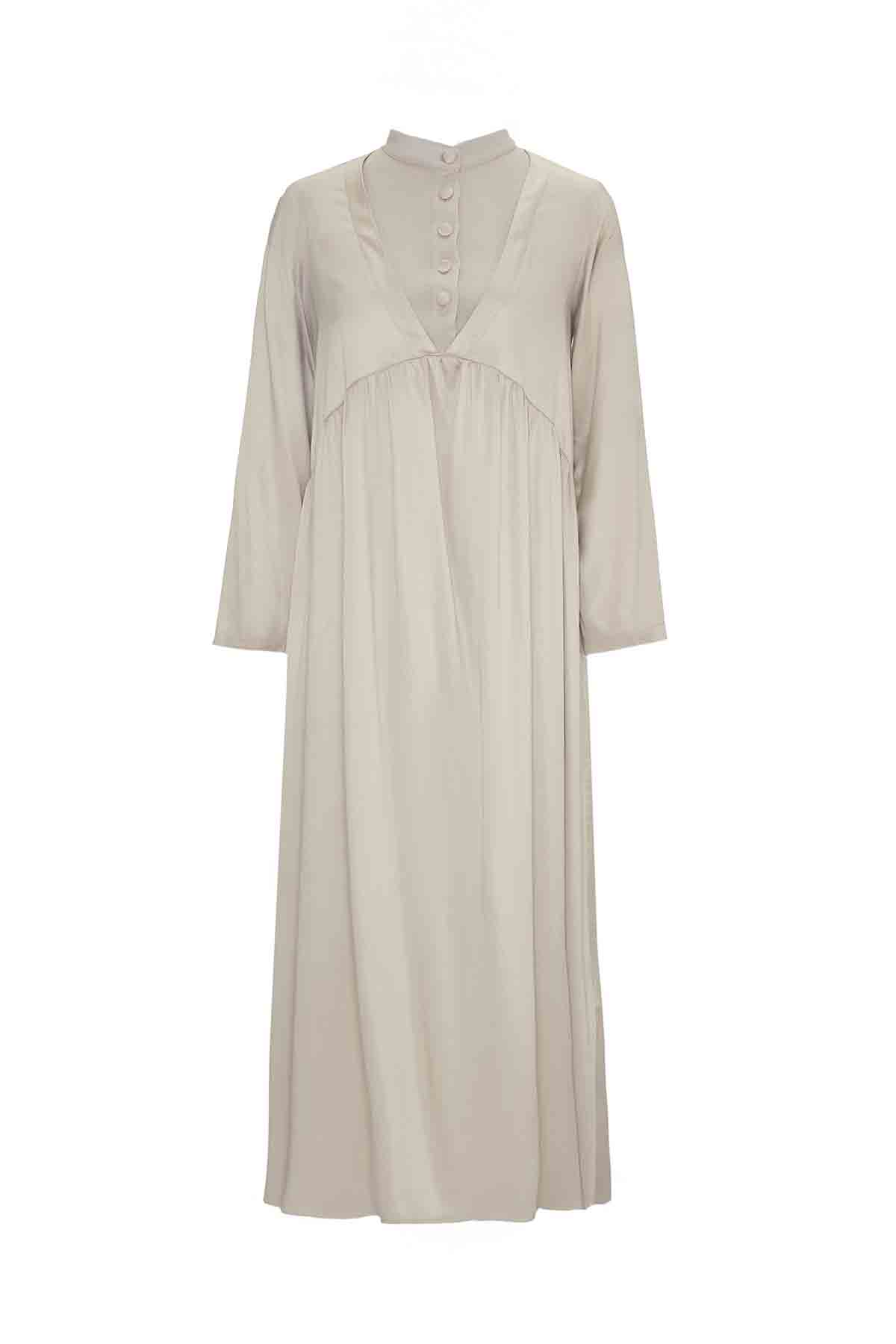 T26K-4019 V Yaka Cupro Düğme Detalı Elbise STONE